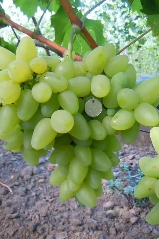 велике, конічної форми 1000 - 1200 гр. Ягоди великі до 16 г, розтріскування не спостерігалося, осами не уражається. Квітка