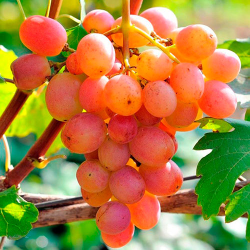 Виноград Гурман Ранний - очень ранний виноград, перспективная урожайная гибридная форма с отличными товарными и вкусовыми качествами. Любительская селекция Крайнова В.Н. (Талисман х Кишмиш лучистый). Созревание раннее (115-120 дней) первая декада августа. Побеги средней силы роста. Цветок функционально женский. Гроздь цилиндрическая, очень крупная, средней плотности, массой до 700-1200г. Ягода овальная, крупная, массой до 8-10г, нежно-розового цвета с приятным мускатом, плотной мякотью. Кожица не повреждается осами, но при еде не ощущается.