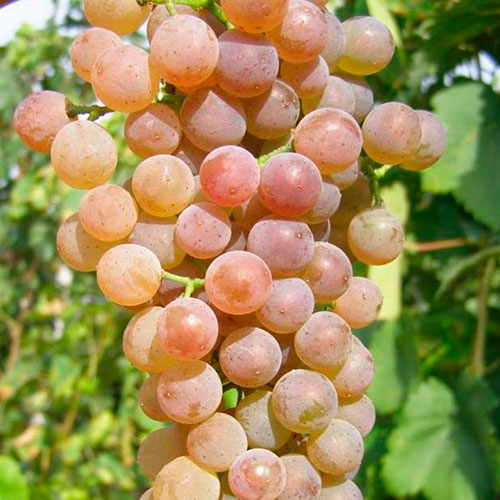 Грона циліндро-конічні, середньої величини, масою 150-200 г, помірно-щільні. Ягоди середні, масою 1,3-1,5 г, овальні, рожеві, з сортовим ароматом. М'якоть соковита, шкірка тонка. Цукристість 19-21%, кислотність 8-9 г/л. Визрівання пагонів хороше. Плодоносних пагонів 85%, коефіцієнт плодоношення 1,8. Навантаження 60 очок на кущ при довжині обрізки плодових лоз на 3-4 очка. Зважаючи на високу плодоносності може знадобитися нормировка врожаю.