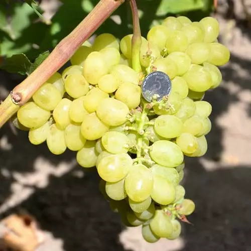 Ягоди подовжено-овальні, масою 15-18 грам, стають жовто-зеленими і напівпрозорими в променях сонця. М'якоть солодка, соковита, приємна, присутній аромат груші і мускату.