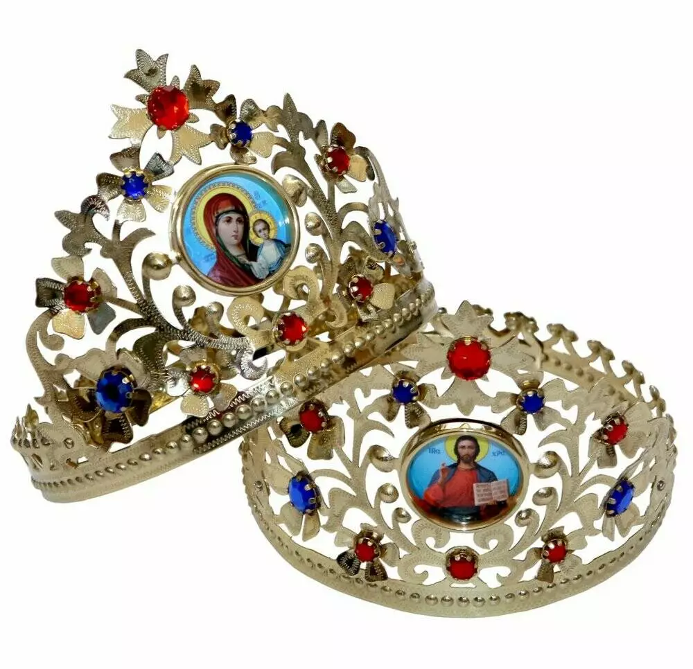 Пропонуємо гарні вінці для вінчання з латуні, прикрашені камінням, хрестами, позолотою, сріблом. У нас ви знайдете моделі з тулією та без неї, виконані в різних стилях та кольоровій гамі.