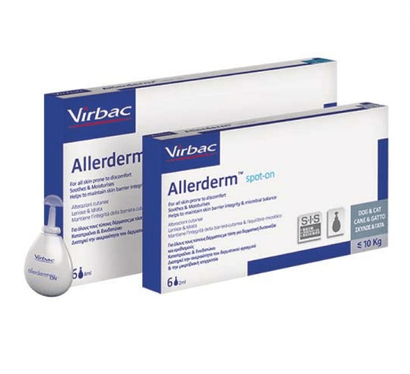 Allerderm Spot-on - продукт для зовнішнього застосування, особливо рекомендований для тварин з дерматологічними проблемами, але може використовуватися для поліпшення загального стану шкіри та шерсті тварини.