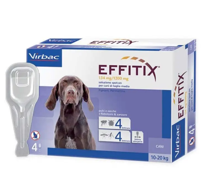 "Virbac EFFITIX" - Краплі від бліх, кліщів, комарів для собак від 10 до 20 кг (4 шт в упаковці)