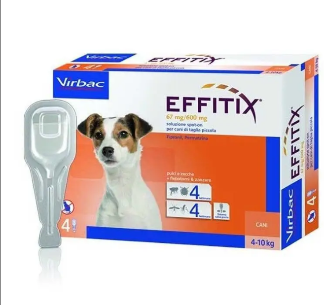 "Virbac EFFITIX" - Краплі від бліх, кліщів, комарів для собак від 4 до 10 кг (4 шт в упаковці)