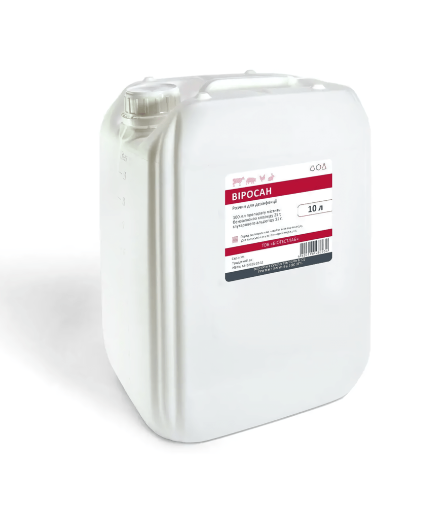 Віросан - засіб для дезінфекції на основі бензалконію хлориду (25%) та глютарарового альдегіду (11%)