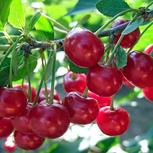 ишня Тургеневская – среднеранний сорт с плодами с необычным форм-фактором. Вишенки имеют чуть расширенную форму сердечка. Плоды темные бордовые, с довольно крепкой мякотью, необычайно сочные. Сок – тоже густо красный. Вкус мягкий, легкий, кисло-сладкий.
