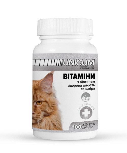 Вітаміни unicum premium для котів з біотином для здорової вовни і шкіри 100 табл.
