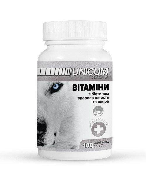 Вітаміни UNICUM premium для собак з біотином для здорової шерсті та шкіри 100 табл.