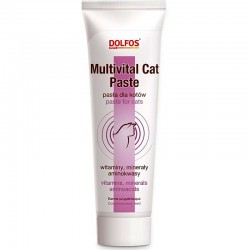 Dolfos Multivital Cat Paste - додаткове дієтичне засіб у вигляді пасти, що містить комплекс вітамінів, амінокислот. у тому числі таурин, та мінеральних речовин для кішок різного віку та порід. Інгредієнти препарату забезпечують правильний розвиток і функціонування організму, покращують зовнішній вигляд кішок, збільшують їх активність і життєві сили.