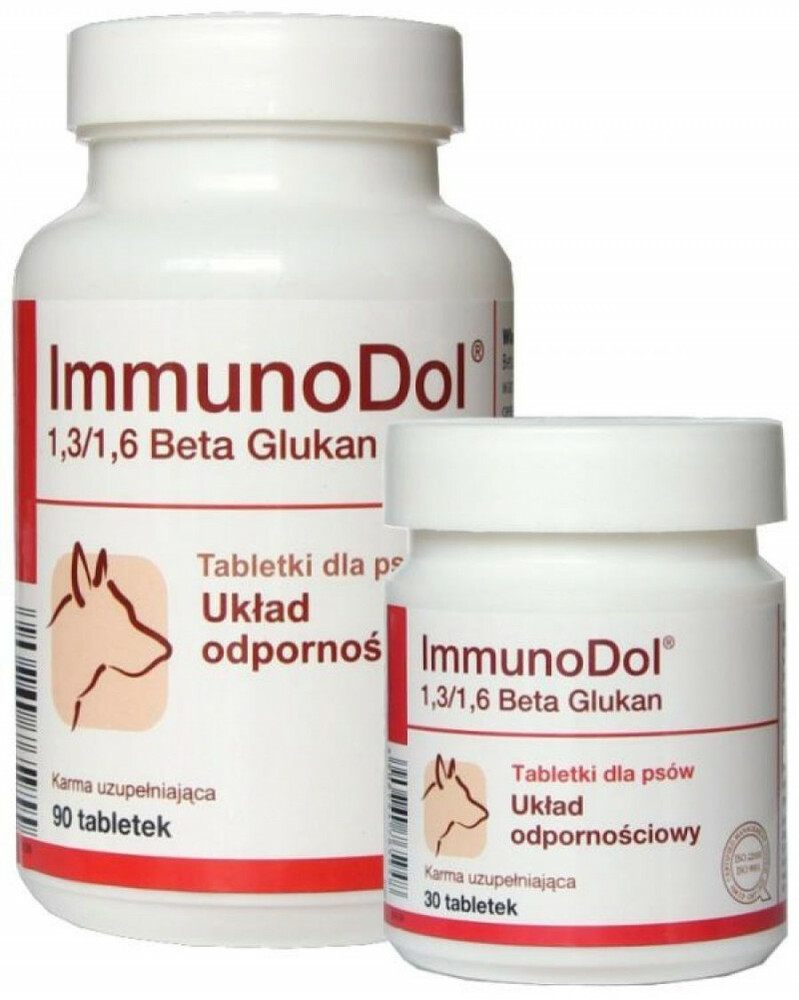 Комплекс Імунодол для собак, у складі якого присутній природний полісахарид 1,3/1,6-Бета Глюкан, виділений з клітинної стінки пекарських дріжджів, активує імунну реакцію організму на подразники, створюючи захисний бар'єр для вірусів, грибків, бактерій і паразитів. Він також стимулює вироблення імунних клітин у кістковому мозку, що знижує ймовірність розвитку раку. Препарат є сильнодіючим антиоксидантом, що посилює дії антибіотиків, протипаразитних ліків. Рекомендований курс прийому - 30 днів, при необхідності повторити через 7-15 діб.