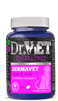 Здоров'я шкіри і якість шерсті собак і кішок — дуже важлива в житті наших вихованців. Багато пород собак мають проблеми з якістю вовни та шкіри, оскільки ці тварини не народилися в нашій кліматичній зоні, і в той же час, інгредієнти в їхній їжі не використовувалися раніше в їхньому харчуванні. Ця проблема має бути вирішена дуже ретельно та скрупульозно, враховуючи, що фактори, що впливають на якість вовни та шкіри, різноманітні. Проблеми зі шкірою, які дуже поширені, — алергічні реакції, роздратування через наявність паразитів та шкірних подразнень. Проблеми вовни вихованців — суха і ламка вовна, тьмяна вовна, випадання волосся і втрата пігментації. Дермавет є продуктом, що складається з вітамінів, мінералів, поліненасичених жирних кислот і дріжджів. Кожен із цих компонентів покращує здоров'я вовни кішок та собак.