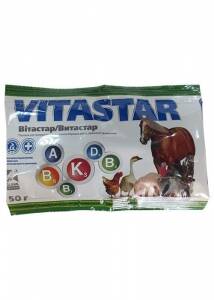 Склад Вітаміни та амінокислоти Фармакологічні властивості Дія препарату зумовлена властивостями окремих компонентів (вітамінів та амінокислот), які сприяють нормалізації обміну речовин в організмі, позитивно впливають на продуктивність, збереженість і відтворні функції сільськогосподарських тварин і птиці. Застосування Препарат застосовують коням, свиням та свійській птиці для поповнення балансу вітамінів та амінокислот; у складі комплексної терапії при анорексії, анемії, виснаженні, стресі; зниженні м'ясної та яєчної продуктивності. Дозування Перорально з питною водою або кормом у дозах: свійська птиця - 0,25-0,5 г препарату на 1 кг корму або 0,125-0,25 г препарату на 1 л води впродовж 4-8 діб; коні, свині - 0,5 г препарату на 1 кг корму або 0,25 г препарату на 1 л води впродовж 3-5 діб. Рекомендується готувати попередній розчин препарату у 10 л води. Приготований розчин використати впродовж 24 год. Протипоказання Не встановлені. Застереження Відсутні. Форма випуску Поліетиленові упаковки по 1, 5, 10, 50, 100, 500, 1000 г. Зберігання Сухе, темне, недоступне для дітей місце при температурі від 5°С до 25°С. Термін придатності - 2 роки з дати виготовлення. Для ветеринарного застосування!