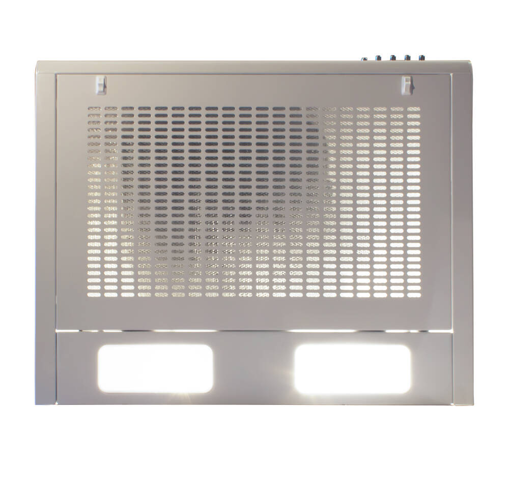 Витяжка оснащена перфорованою решіткою та сучасним фільтром еврокассетою, що забезпечує ефективне очищення повітря. Вбудовані два освітлювальних лампочки E14 потужністю 5 Вт кожна забезпечують яскраве освітлення робочої поверхні.