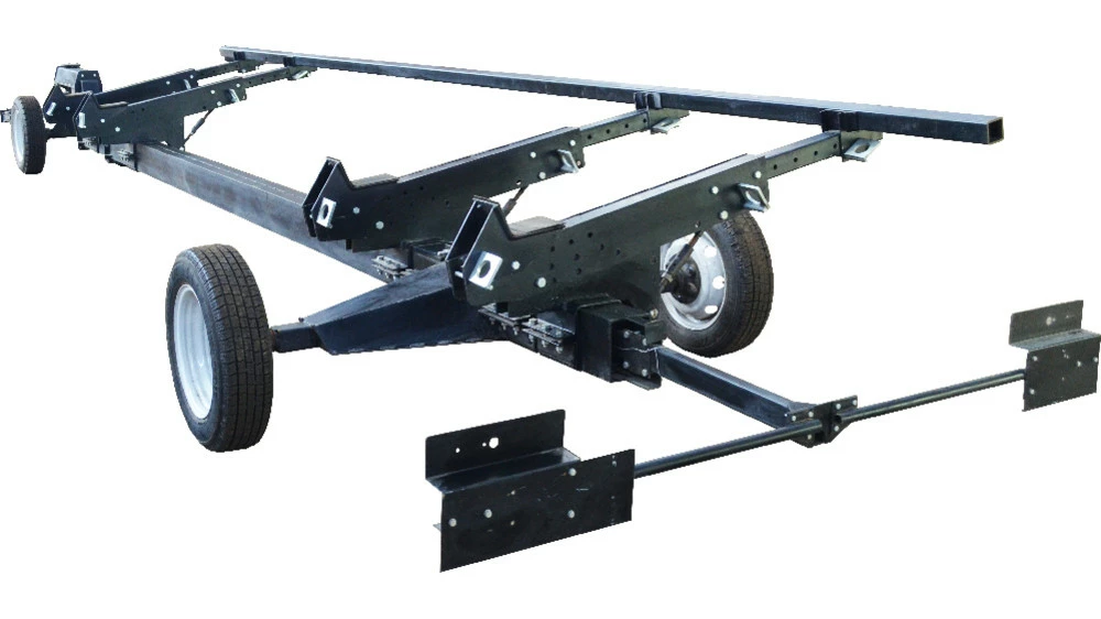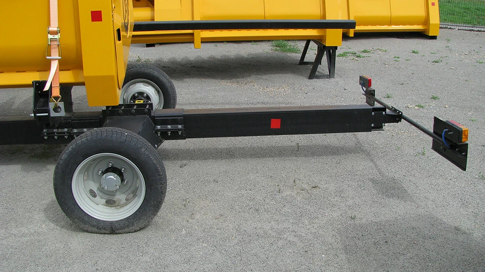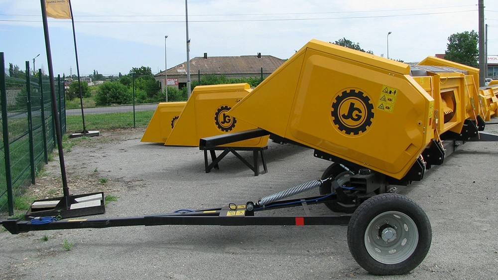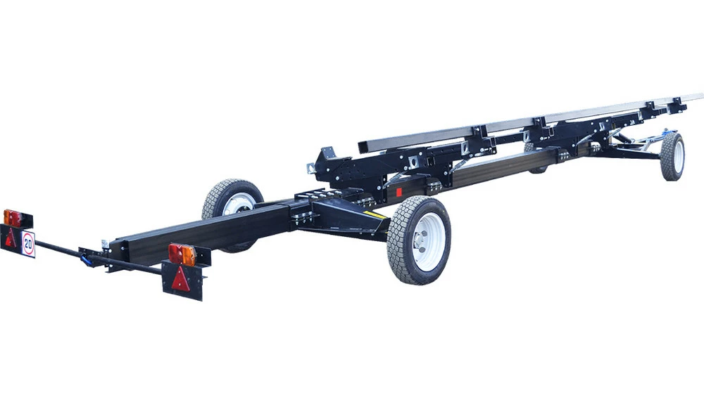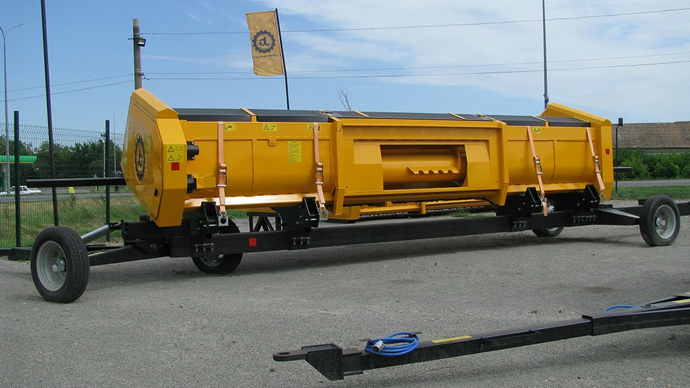 Візок транспортний універсальний ТЖУ призначений для транспортування соняшникових, кукурудзяних та зернових жниварок John Greaves, John Deere, Claas, New Holland, Case, Zaffrani, Sampo, Massey Ferguson, Oros, Акрос, Полісся, Дон та ін., по трасах загального користування, внутрішньогосподарським та польовим дорогам.