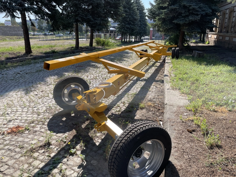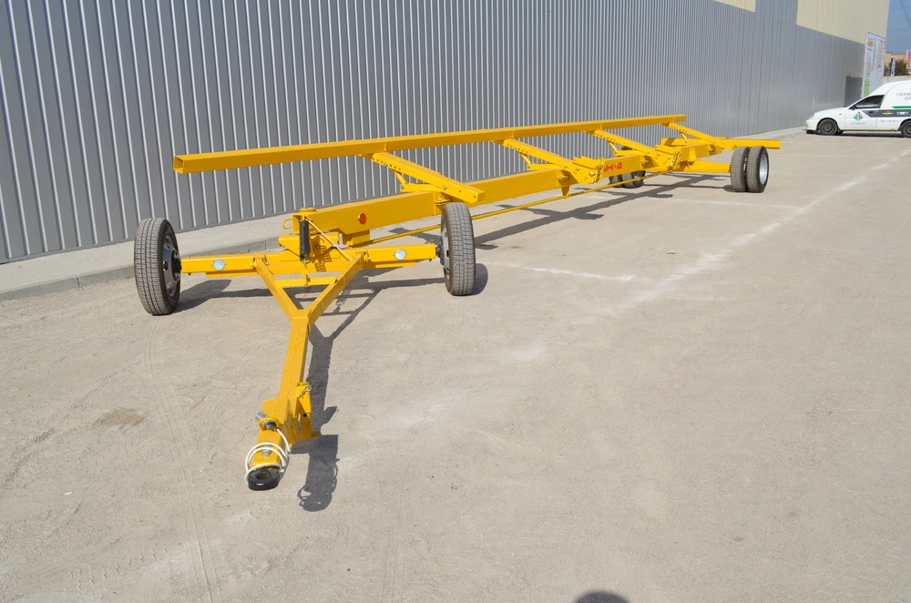 Призначений для транспортування зернових, кукурудзяних та соняшникових жниварок безпосередньо самим комбайном, обладнаним причіпним пристроєм. Доцільно використовувати для перевезення жниварок із шириною захвату до 10-12 м. Візок оснащений всією необхідною світлотехнікою для безпечного пересування. Дозволяє перевозити жниварку між полями. по дорогах загального призначення, а також здійснити зручне зберігання жниварки в зимовий період. Передній міст візка обладнаний балансиром, який дозволяє точно копіювати рельєф з метою запобігання викривленню рами, а широко розташовані колеса дозволяють уникнути перекидання жниварки при переїзді нерівностей.