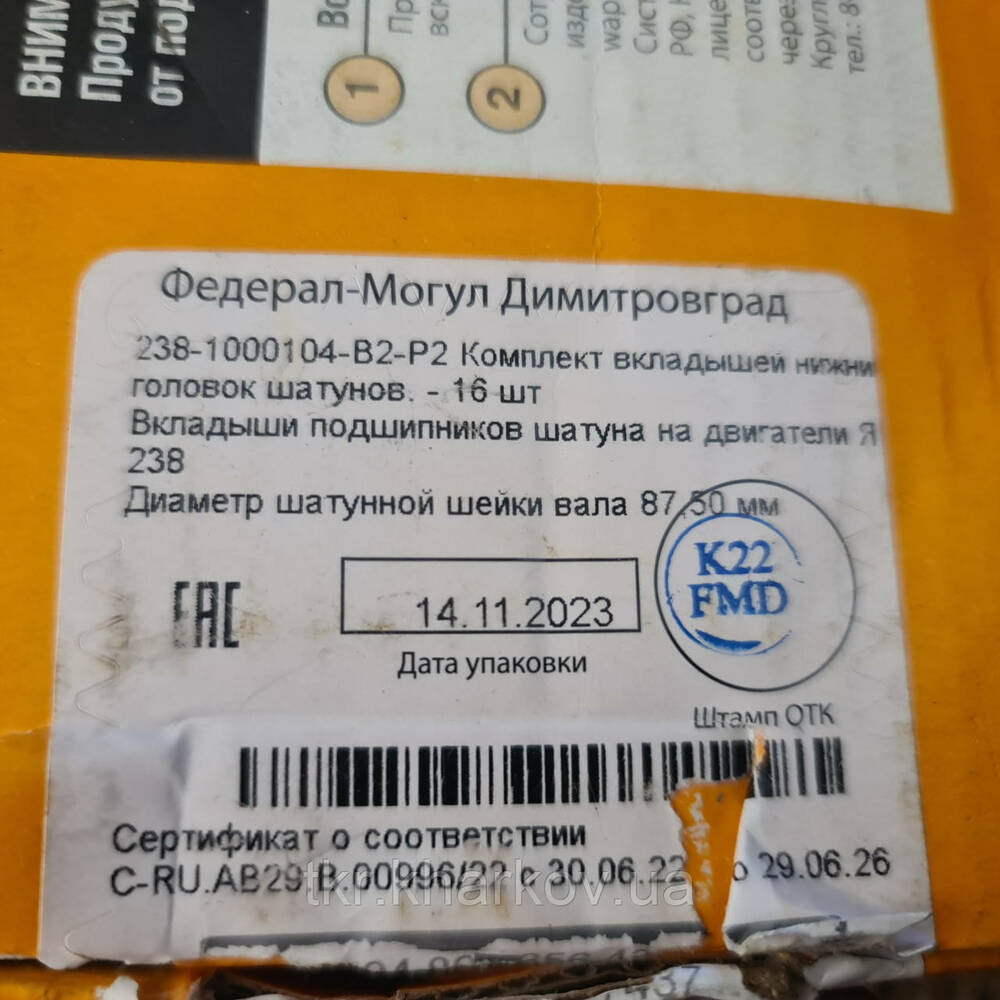 Шатунні вкладки колінчастого вала ЯМЗ-238 виробництва Димітградського заводу вкладок.