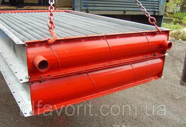 Теплоотдающий элемент выполнен из стальной трубы и алюминиевого оребрения.