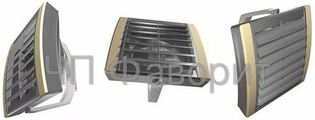 Комплект направляющих жалюзи с индивидуальной регулировкой обеспечивает направление струи теплого воздуха в четырех направлениях. Направляющие лопатки с сечением аналогичным сечению самолетного крыла позволяют получить максимальную дальность струи теплого воздуха.