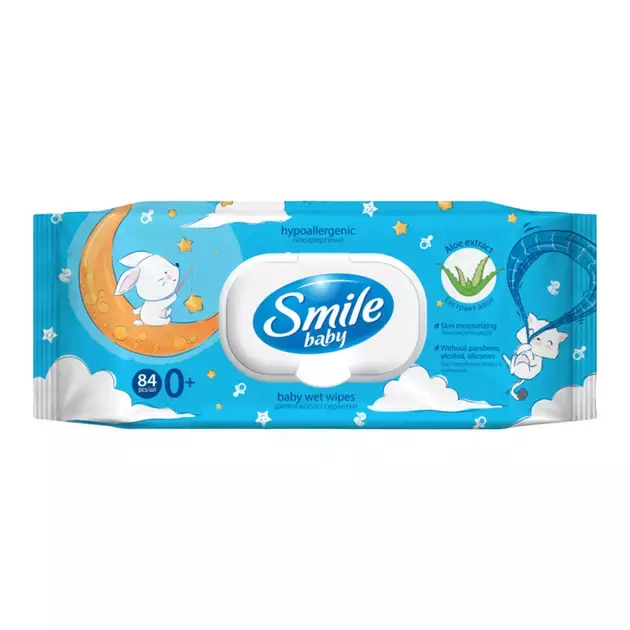 Вологі cepветки дитячі Smile з алоє 84 шт