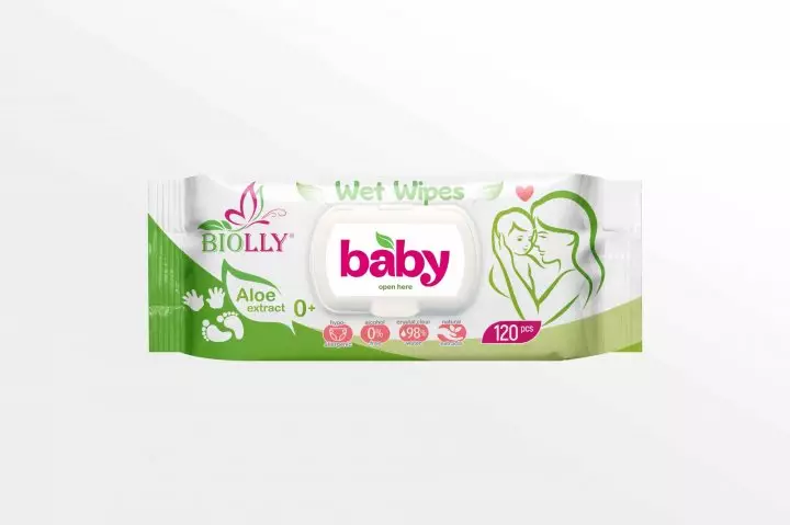 Вологі серветки Biolly Baby з алоє вера з клапаном 120 шт.