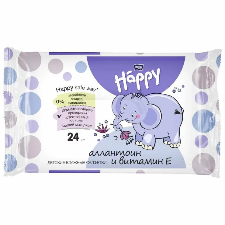 Вологі серветки для дітей Happy Delicate 24 шт. Белла Хеппі - це унікальні очищаючі, вологі серветки. До складу яких входить алантоїн і цінний вітамін Е, який інтенсивно живить шкіру і надає загоювальну дію. Ці серветки не сушать і не подразнюють шкіру. Вони біорозкладні, тому їх можна викидати в унітаз. Дуже зручна та компактна упаковка.