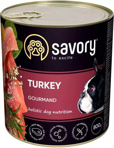 Savory Dog Gourmand Turkey pate - ніжний паштет із соковитою та рихлою текстурою зберігає концепцію повноцінного холістичного раціону. Можна використовувати як самостійне харчування, або у комбінації ії сухим кормом у різні прийоми їжі. Чудово компенсує нестачу питної води у раціоні.