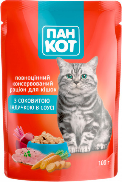 Пан Кіт — повноцінний консервований корм для кішок.