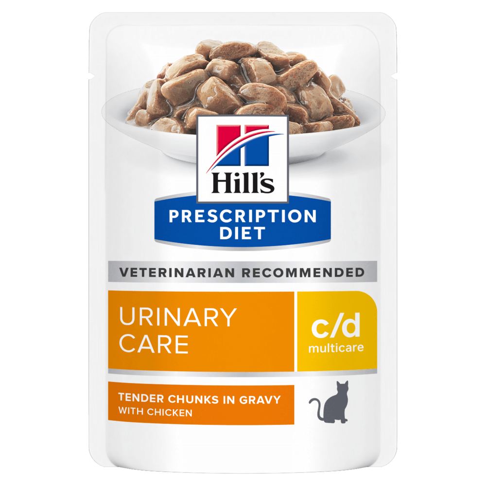 Вологий корм для котів Hill’s PRESCRIPTION DIET c/d, з куркою – повнораціонне дієтичне харчування, спеціально розроблене дієтологами і ветеринарними лікарями, щоб допомогти котам із захворюваннями нижніх відділів сечовивідних шляхів (ЗНВСШ).