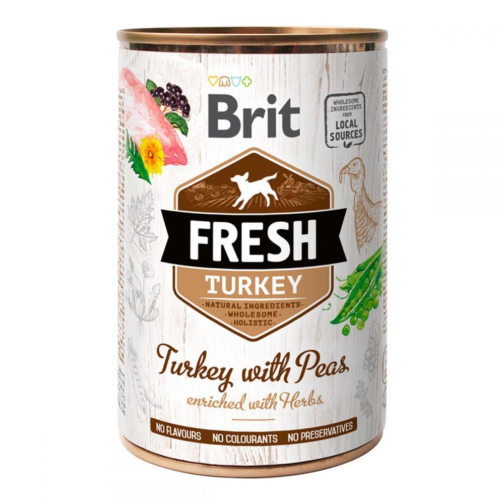 Холістичний принцип у виготовленні та якісні складники – це тільки початок переліку особливостей вологого корму для собак Brit Fresh Turkey with Peas.