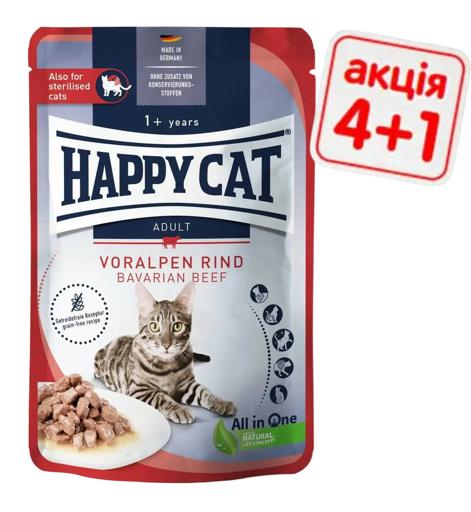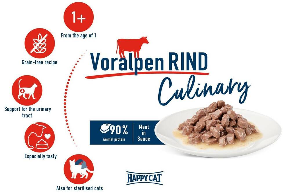 Вологий корм Happy Cat Culinary Voralpen Rind з яловичиною для котів (шматочки в соусі) Акція 4+1 (5 х 85 г)