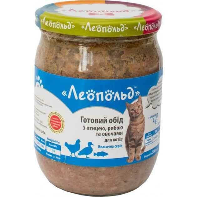 Вологий корм Леопольд консерви для котів зі смаком риби та овочів 500 г