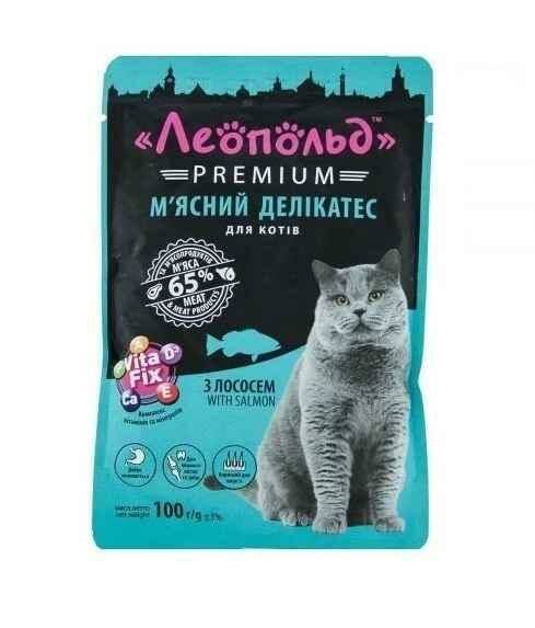 Вологий корм Леопольд Преміум м'ясний делікатес з лососем для кішок 100 г
