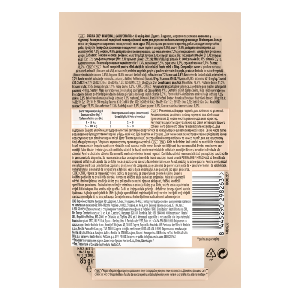 Вологий корм Purina One Mini/Small для дорослих собак маленьких порід (до 10 кг) у підливці з куркою, морквою та квасолею 85 г