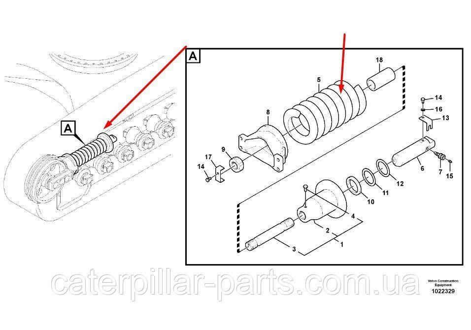14709318 Натягувач гусениці для EC220, EC300 Volvo. Купити запчастини до спецтехніки Volvo в Києві безпосередньо з нашого складу. Всі запчастини до мостів і редукторів ми поставляємо безпосередньо від виробника. Ремонт мостів, трансмісії та двигунів проводить наш сервісний центр (Київ, Україна).