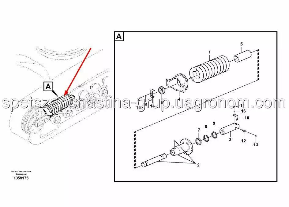 Натягувач ланцюга для спецтехніки Volvo EC360