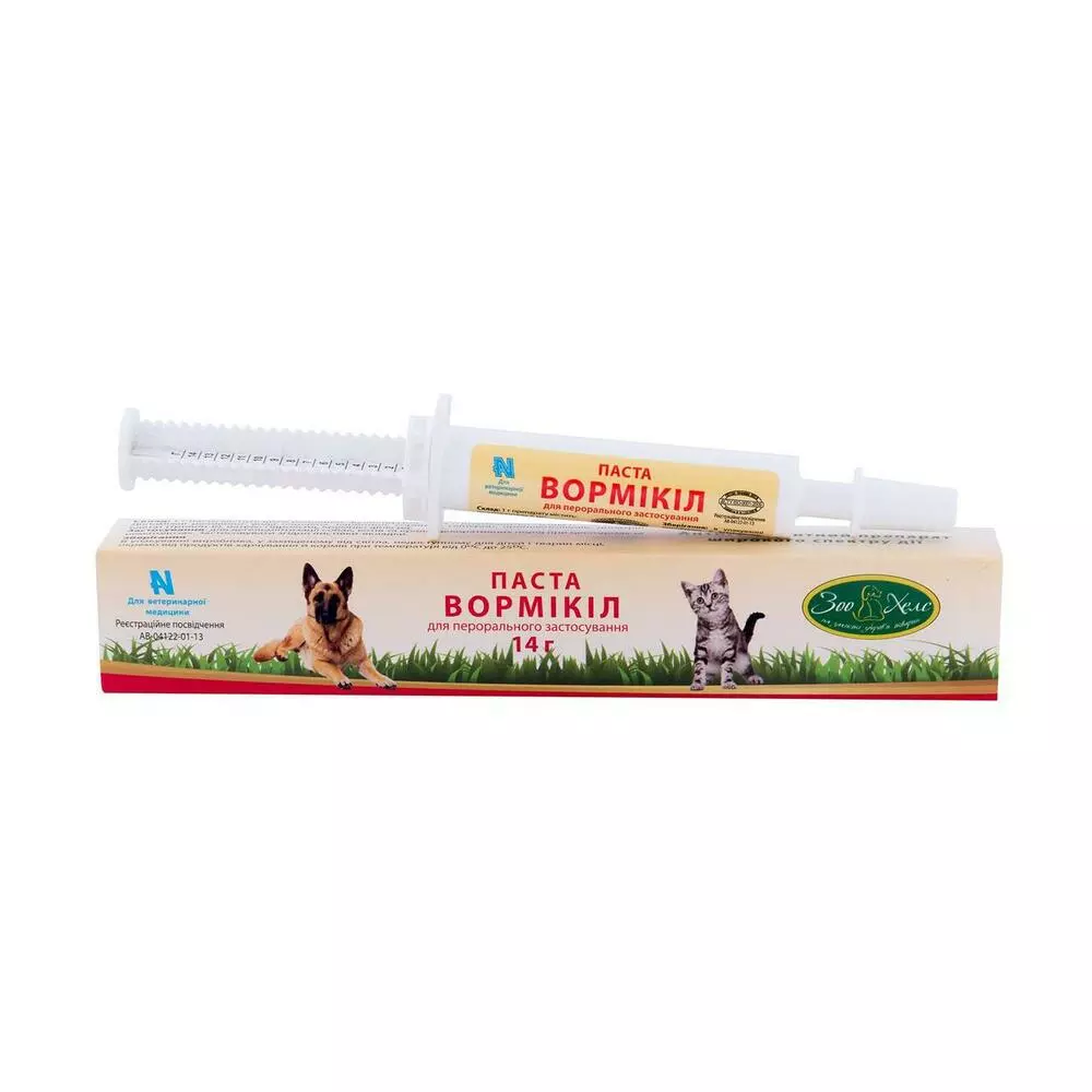 Доза - 1 г Вормикил пасти на 1 кг маси тіла одноразово. Один шприц містить дозу на 14 кг або 6 кг.