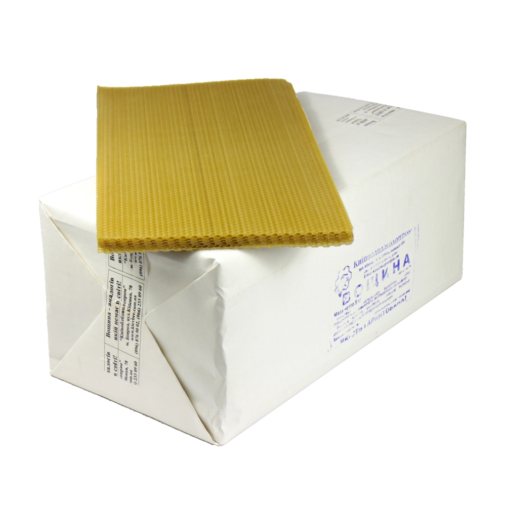 Сертифікована вощина різних розмірів під рамку Дадан, Рута (інше уточнювати). Використовується на пасіках для відбудови бджолами медових стільників або в будь-якій іншій галузі, як-то виготовлення декоративних свічок тощо.