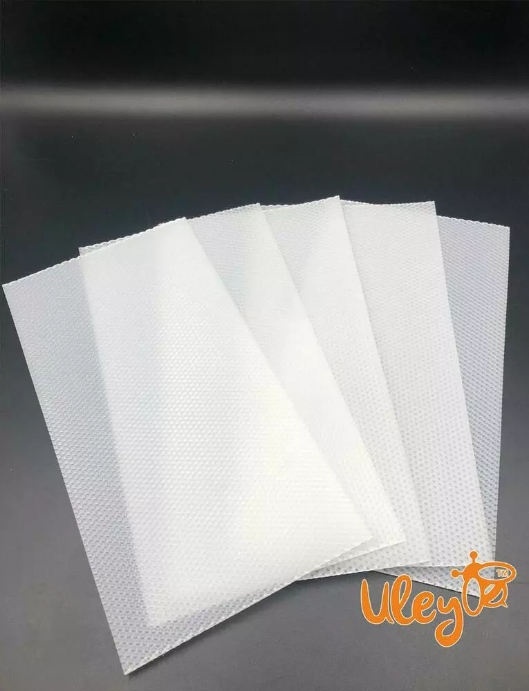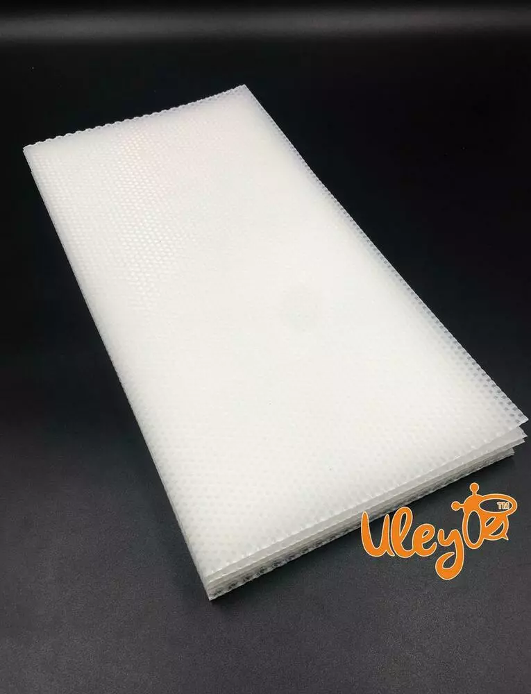 Розмір вощини розрахований під стандартну рамку заввишки 230мм, але враховуючи відмінності в розмірах рамок різних виробників пластик можна різати під потрібні розміри свого стандарту.