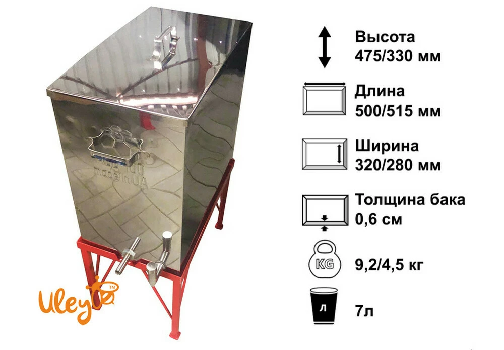 Габаритні розміри бака воскотопки (без підставки), мм: