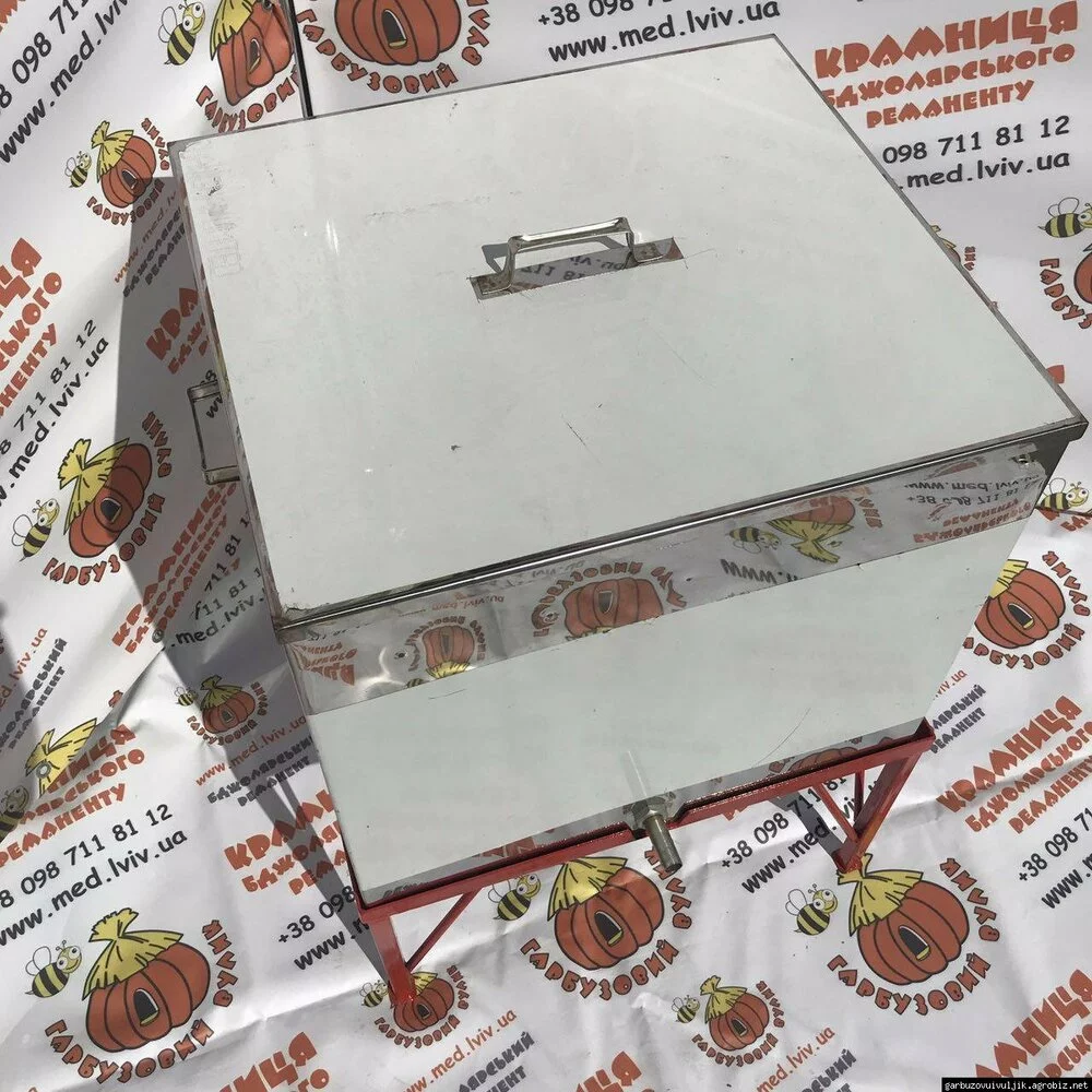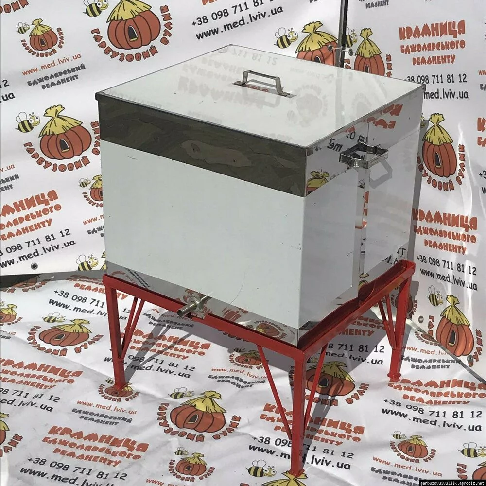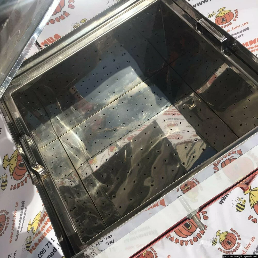 Воскотопка парова нержавіюча для рамок (на 13 рамок) призначена для вилучення воску зі старих і використаних соторамок способом виплавлення паром. У процесі роботи відбувається також знезараження самих рамок.