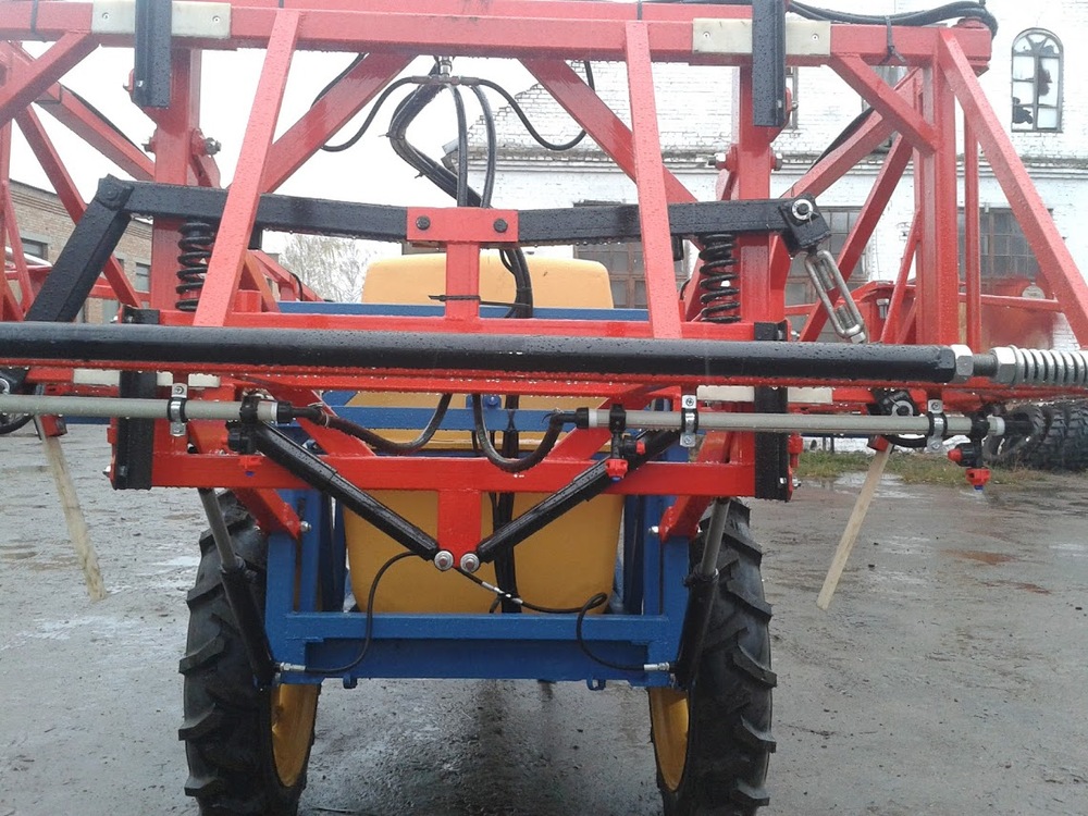 -  штанга опрыскивателя полностью гидрофицированная (параллелограммный механизм) с вертикальной рамкой, механизмом стабилизации, опорными кронштейнами. Высота подъёма до 1,5 м, опускания до 0,5 м. Имеет эффективный механизм навески, в котором колебания опрыскивателя в вертикальной плоскости переходят в  колебания штанги в горизонтальной плоскости, благодаря чему обеспечивается высокая равномерность обработки и высокая надёжность работы штанги. Штанга объёмной конструкции, подъём и опускание, складывание и раскладывания осуществляется с помощью гидросистемы из кабины трактора. Фиксация положения штанги в разложенном состоянии осуществляется с помощью гидрозамков. На штанге в местах возможного ее стирания установлены пластины из материала, который имеет сверхнизкий коэффициент трения.