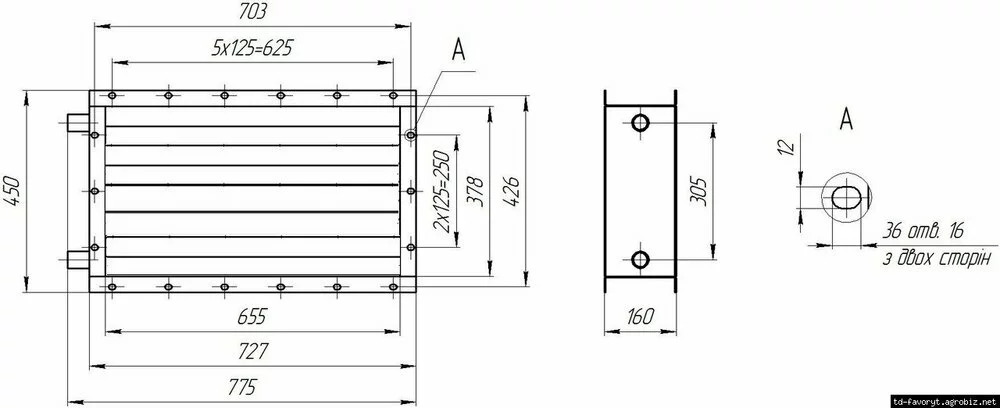 Вид поверхности калорифера Ребристая