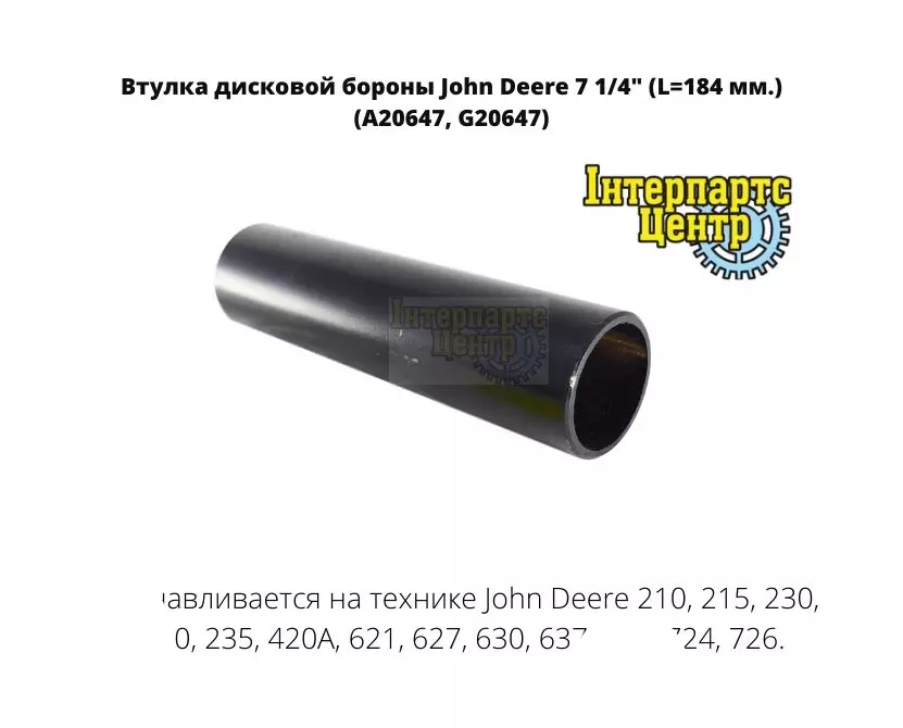 Втулка підшипника дискової борони (L=184 мм), встановлюється на техніці John Deere 210, 215, 230, 2310, 235, 420A, 621, 627, 630, 637, 722, 724.