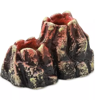 Скалистый вулкан с потоками лавы станет оригинальным дополнением аквариума, его стильной фишкой. В то же время украшение очень функционально. Она может служить фиксатором погруженного в грунт компрессора, укрытием для рыб и даже необычным горшком для водных растений.