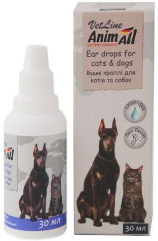 Вушні краплі AnimAll VetLine — засіб косметично-гігієнічний рідкий для догляду за вухами тварин.