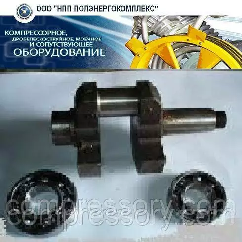 Колінчастий вал виготовляється шляхом лиття високоміцного чавуну ВЧ60, має противаги та обертається на шарикопідшипниках та має канали для проходу мастила. У торці колінвала запресована втулка з квадратним отвором для з’єднання з масляним насосом. Змазка колінчастого вала здійснюється шляхом попадання масла через порожнистий валик насоса масляного і під тиском змащуються шатунні шийки колінчастого валу. Тиск в системі мастила контролюється за показаннями манометра і при номінальній частоті обертання має бути не нижче 1,7 кгс/см2. При монтажі колінчастий вал встановлюється в корпус компресора з напресованими підшипниками, які при монтажі на вал підігріваються в маслі при температурі 100-200 С. Вал компресора опускається в корпус компресора у вертикальному положенні.