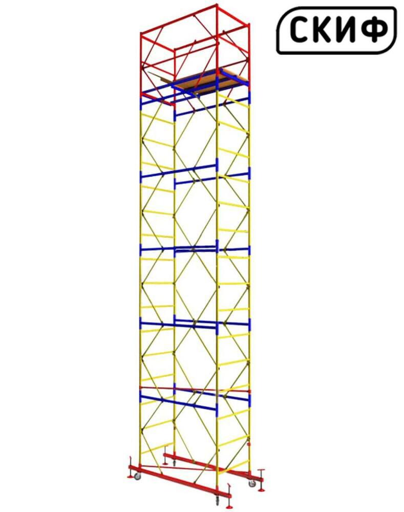 Вышка тура СКИФ 0,8×1,6 1+5 6,6м STANDART изготавливается из электросварной трубы диаметром 40 мм. Все детали окрашиваются по технологии порошковой окраски, в итоге получается покрытие с высокими защитными и декоративными Вышка тура СКИФ 0,8×1,6 1+5 6,6м STANDART – универсальное высотное оборудование. Передвижная вышка для стройки и ремонта.