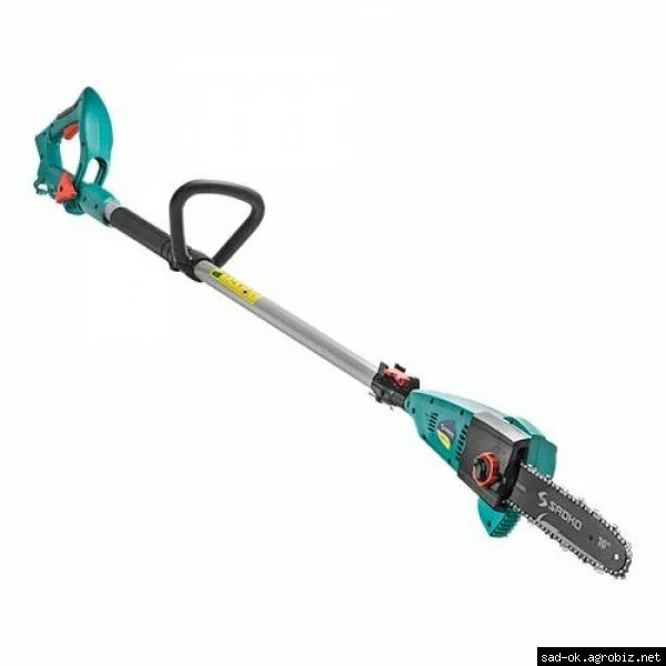 Высоторез электрический Sadko EHS-550 с шиной, длиной 8 дюймов (20 см) предназначен для обрезки ветвей деревьев или кустов. Этот вид работы в саду можно выполнять без лестницы или других подобных средств, ведь общая длина высотореза составляет от 200 до 280 сантиметров, в зависимости от настройки штанги под необходимую потребность.