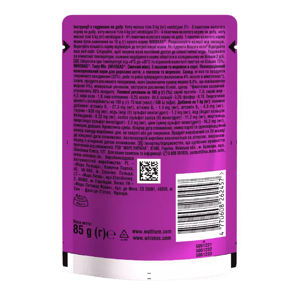 Whiskas (Віскас) Tasty Mix з лососем та морквою в соусі 85 г