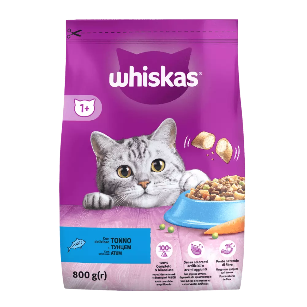 Повнораціонний сухий корм для дорослих котів Whiskas (Віскас) смачні подушечки з тунцем ретельно розроблені так, щоб дати вашому котику все необхідне, щоб він муркотів. Виготовлений з високоякісних інгредієнтів від перевірених постачальників, кожен смачний рецепт забезпечує ідеальний баланс вітамінів і мінералів, щоб улюбленці були щасливими, здоровими та жваво бігли до миски під час кожного прийому їжі.